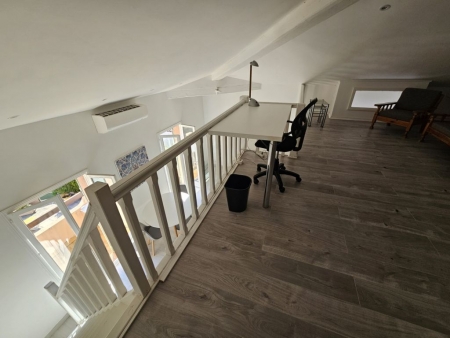 Une mezzanine vient compléter l’ensemble, pouvant faire office de bureau ou de chambre.