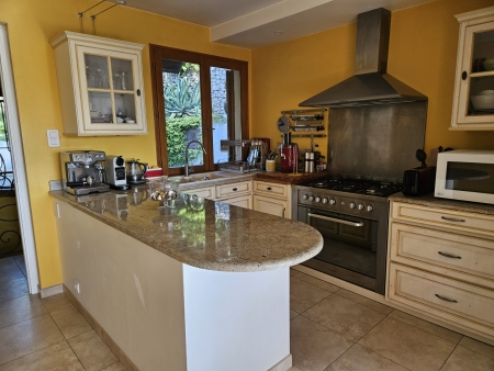 Au cœur d'une résidence privée et sécurisée proche de Antibes les Pins et du quartier St Maymes, belle villa meublée au calme avec vue dégagée.